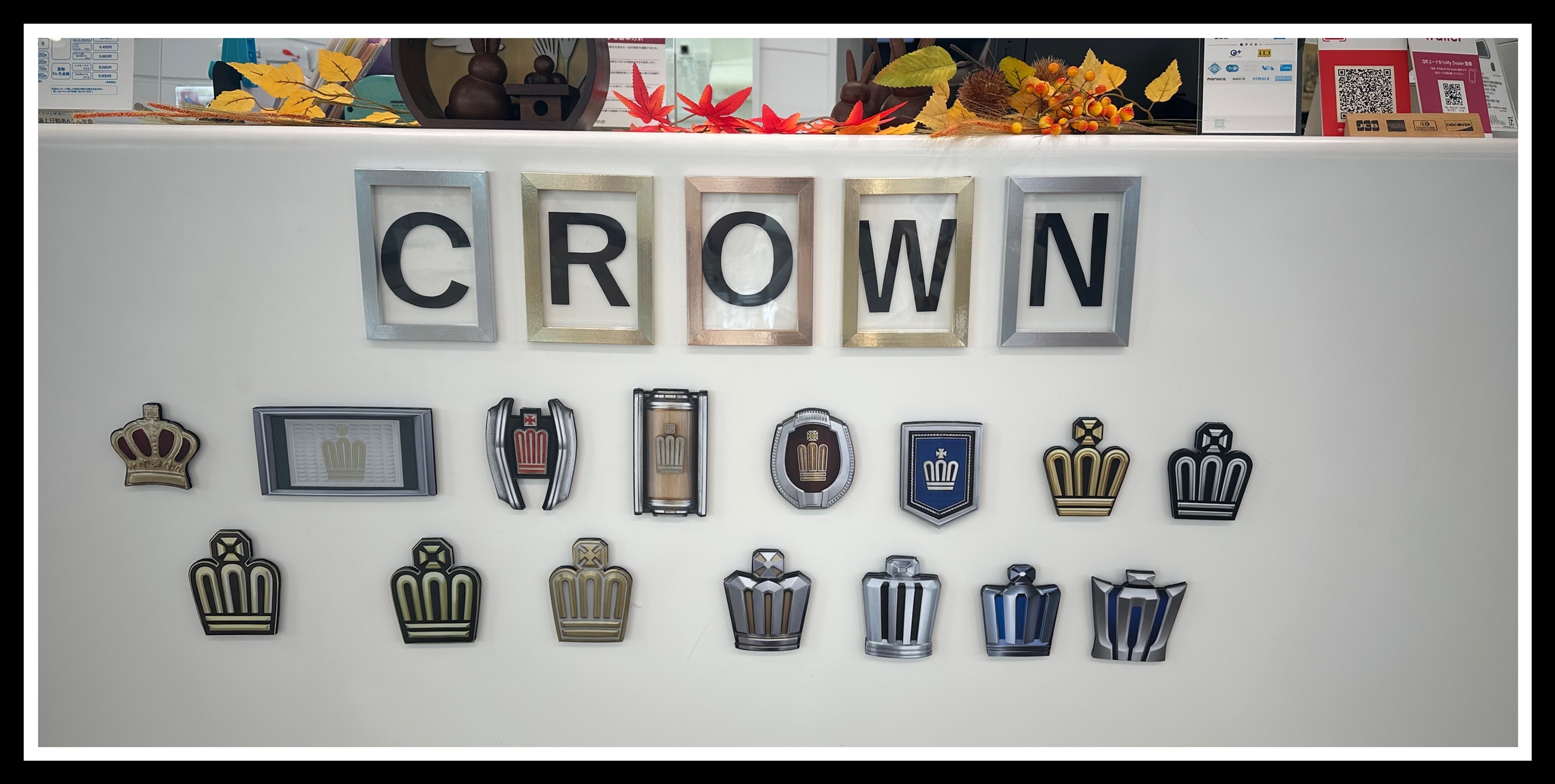 受付には歴代のクラウンのエンブレムが
