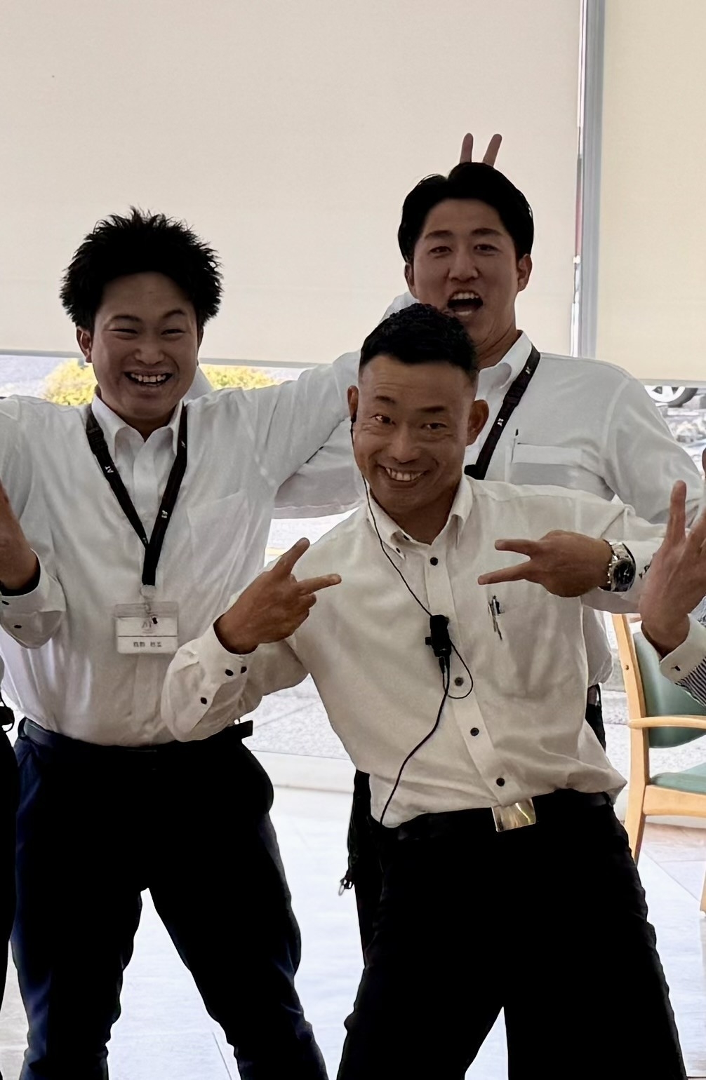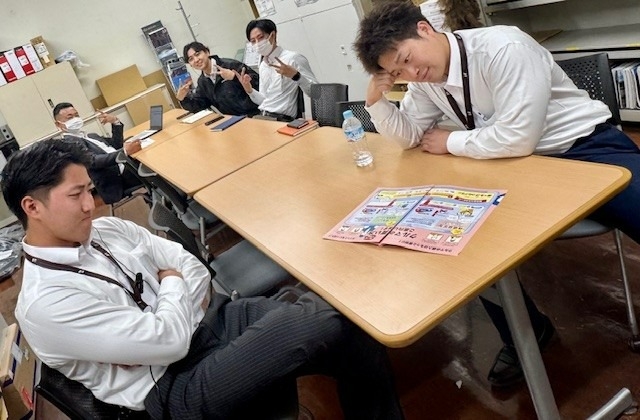 奥の方でミーティング中のスタッフ達は