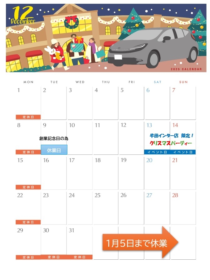 12月はお休みも多いので