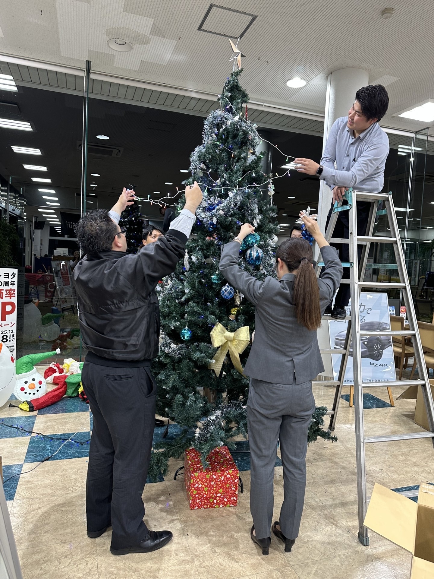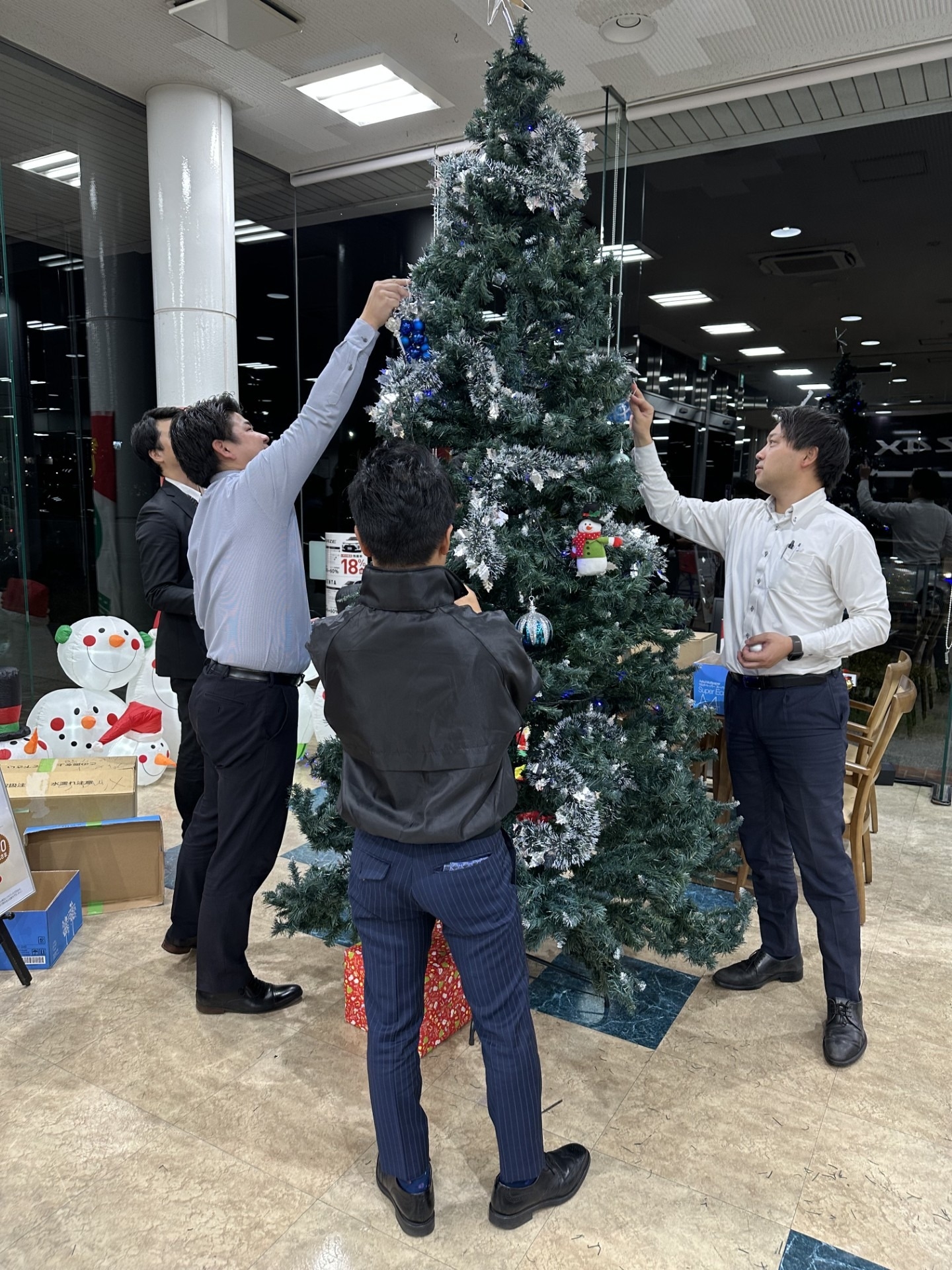 店内ではツリーを飾り