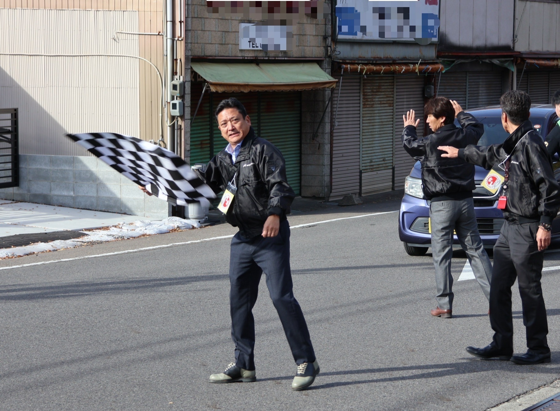 兒島店長もフラッグを振り