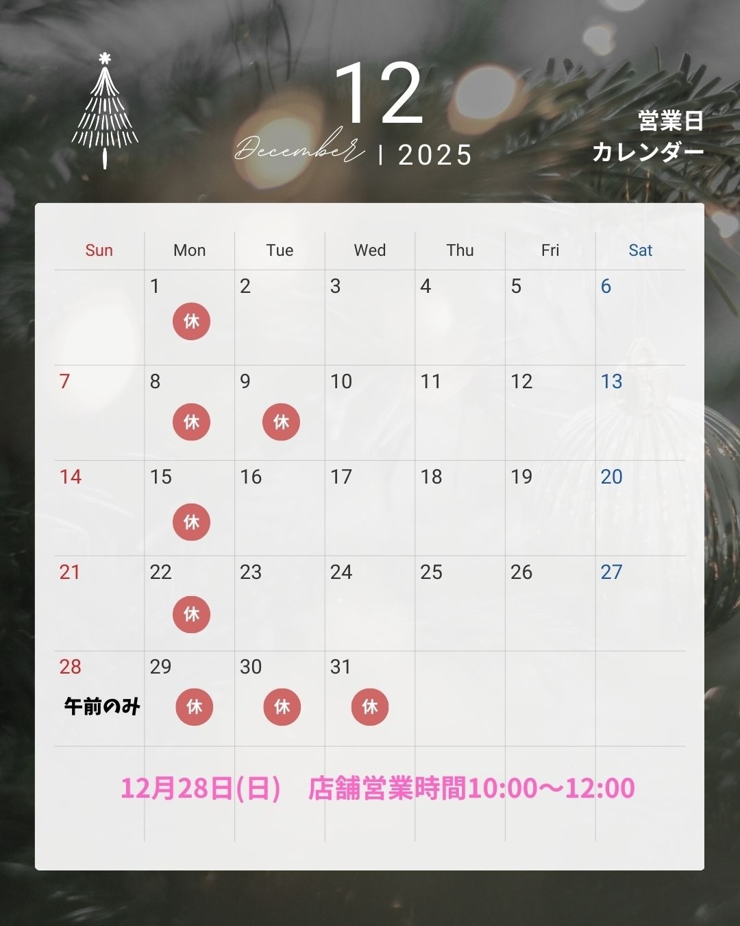 年末年始休業のご案内☃🌳