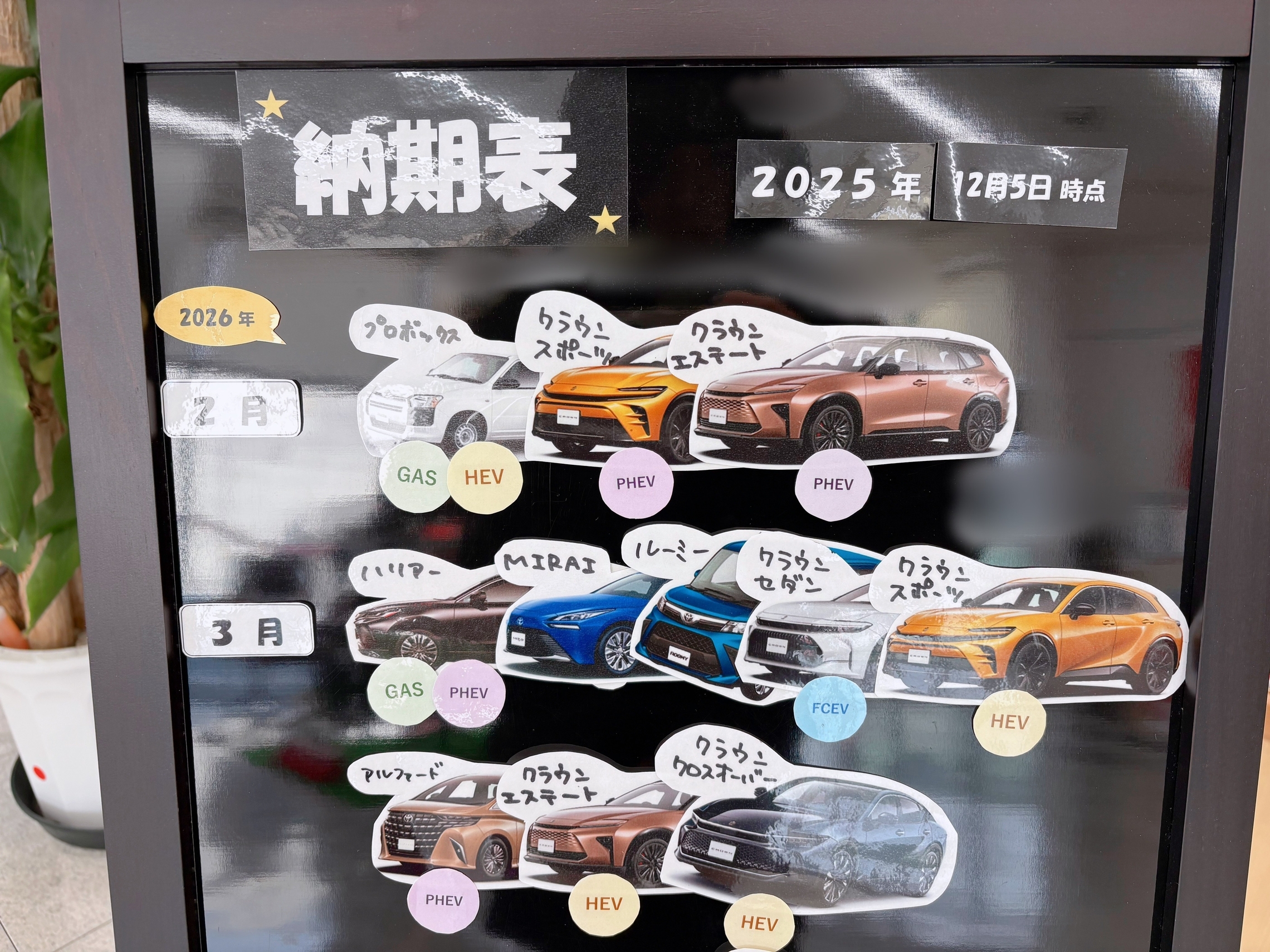 12月現時点の納期のご案内です🚘
