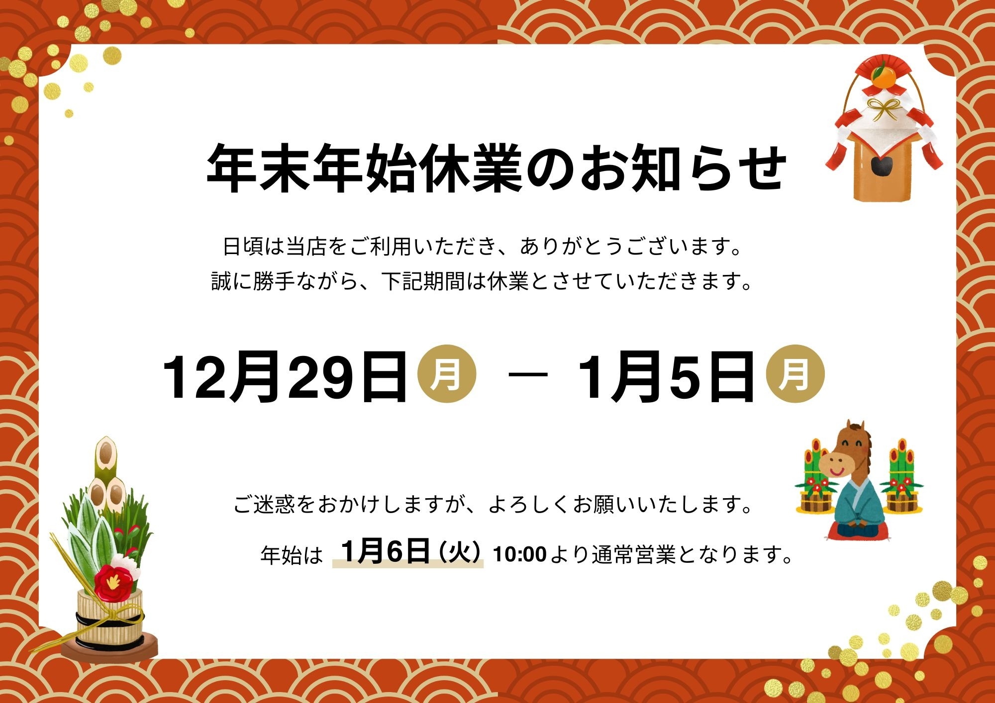 休業日のご案内です🎍