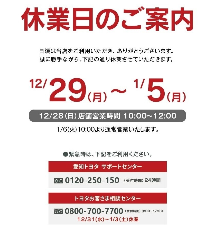 年末年始休業日のご案内です🚗💦✨
