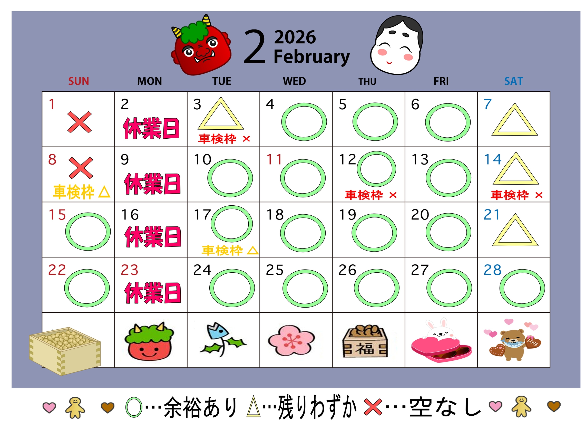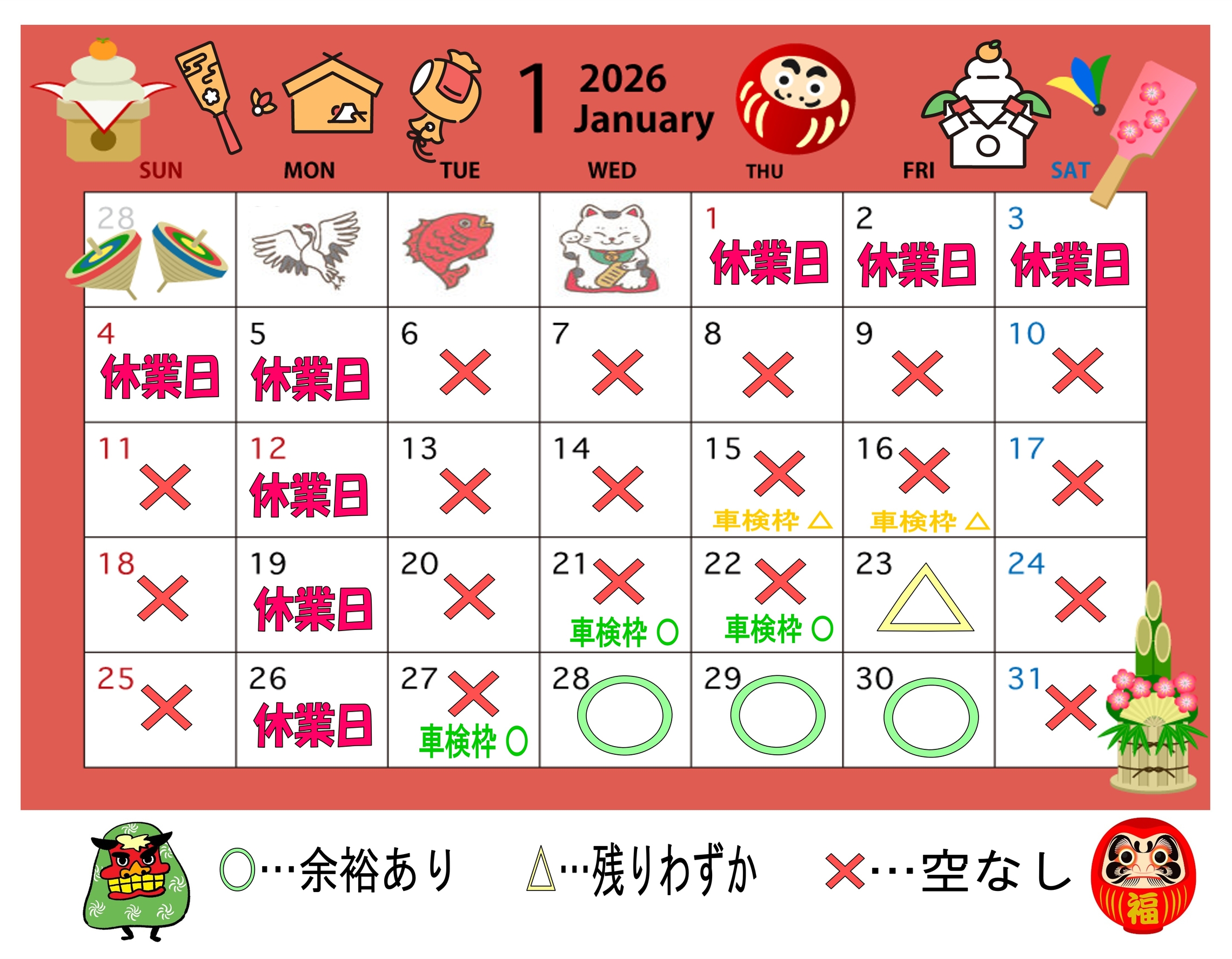 🔧1月&2月 サービス工場 空き状況🔧