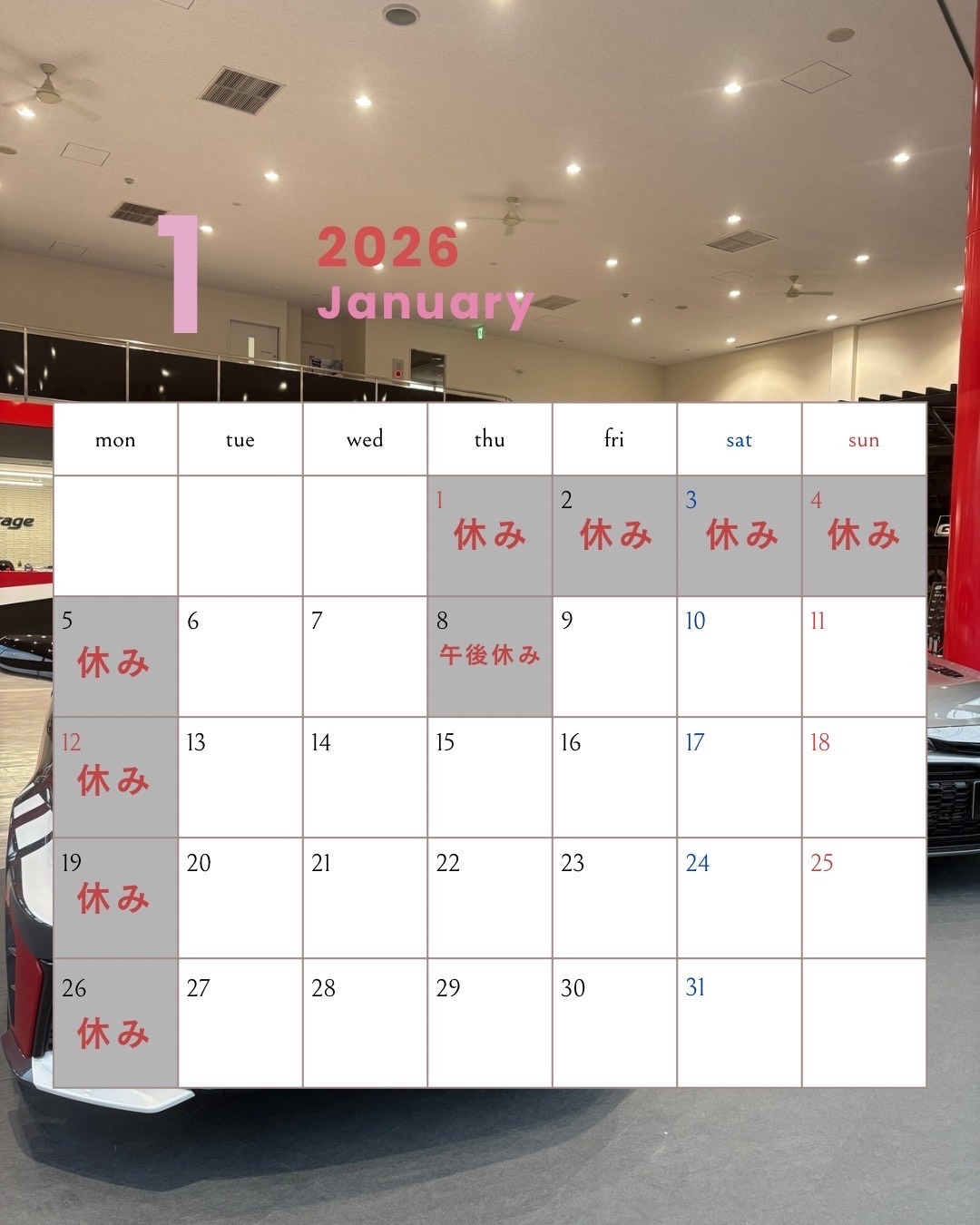 1月の営業日カレンダーです