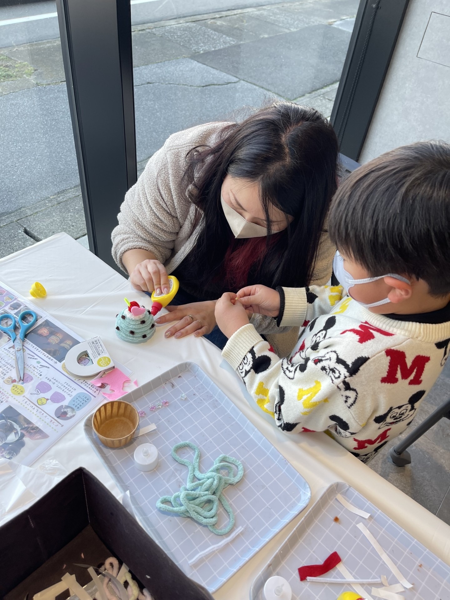 毛糸やビーズなどのデコレーション素材を使い