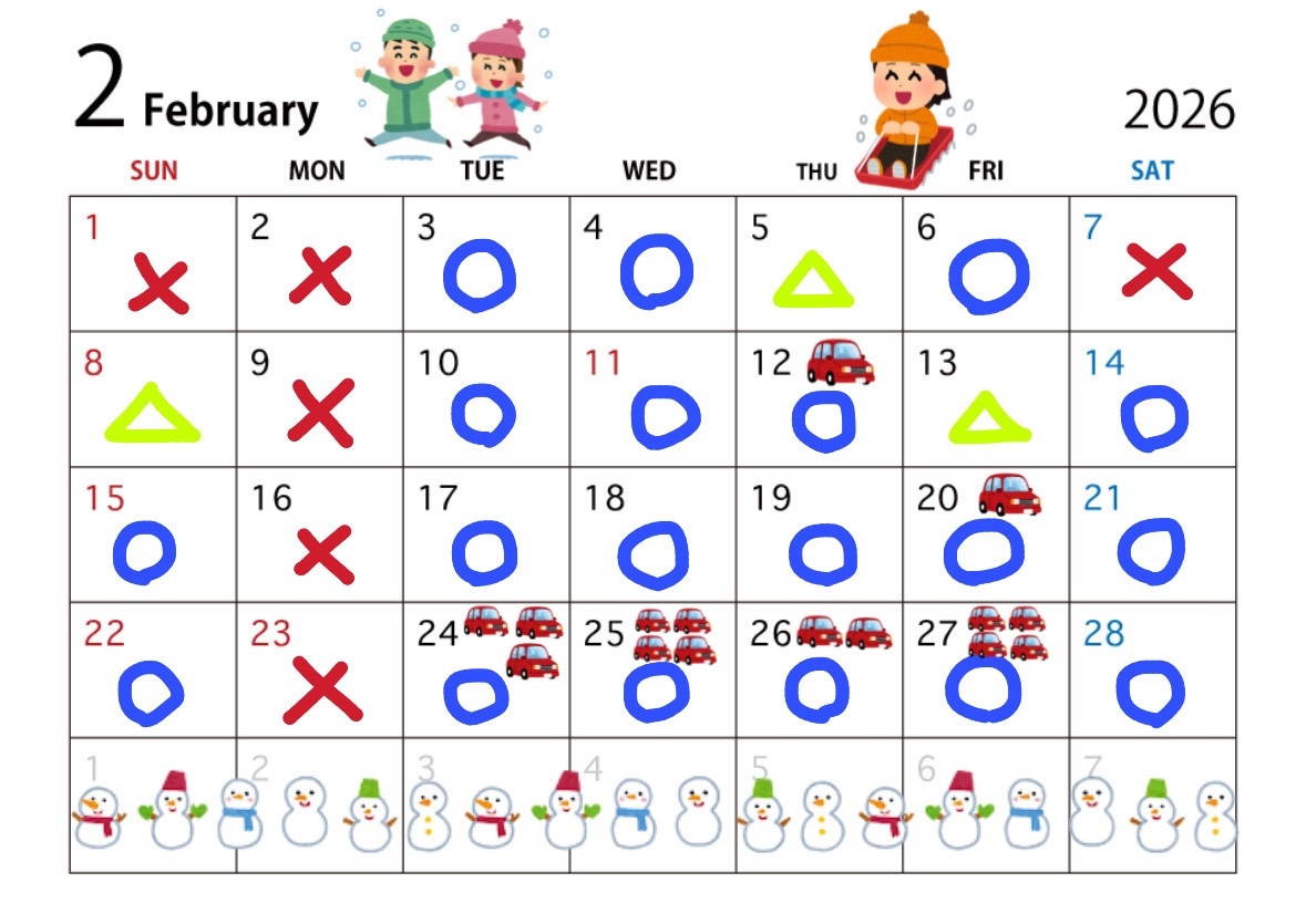 2月点検空き状況カレンダー☃️❄️