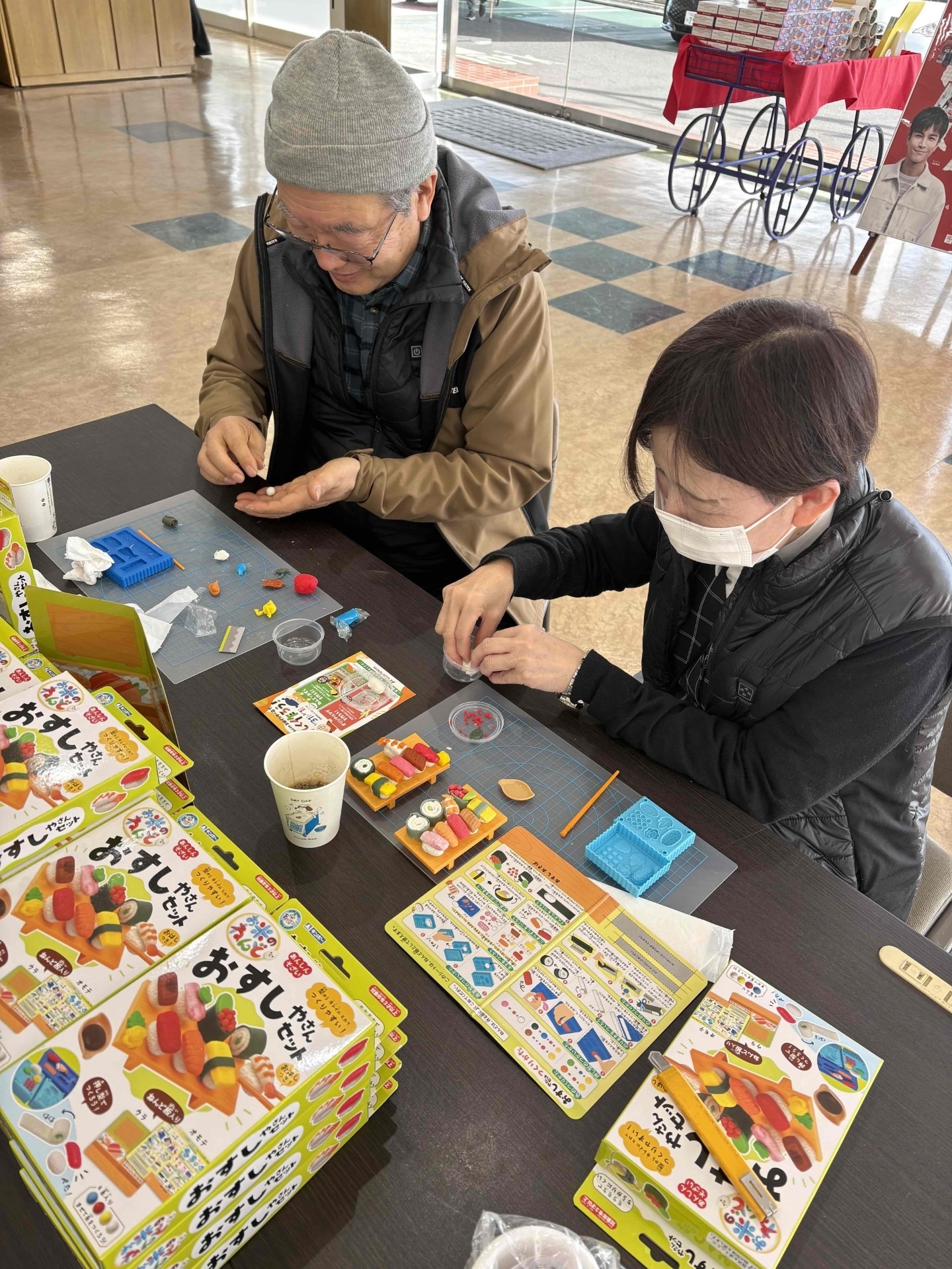 お寿司を協力して作っている姿が