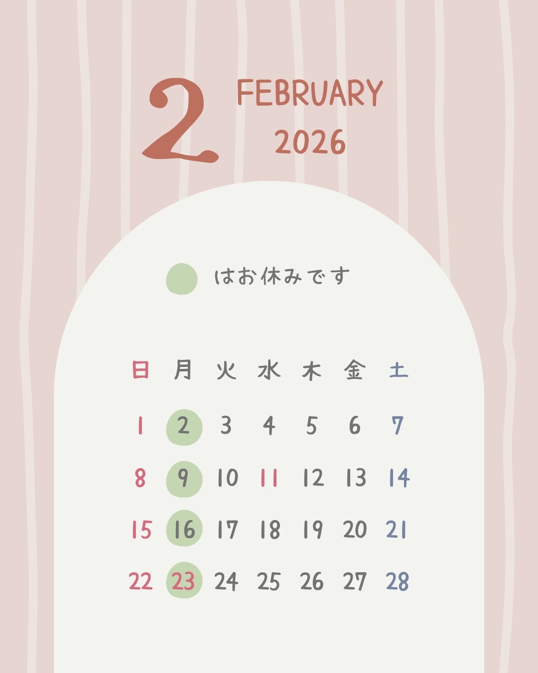 ☃️2月 定休日のお知らせ☃️