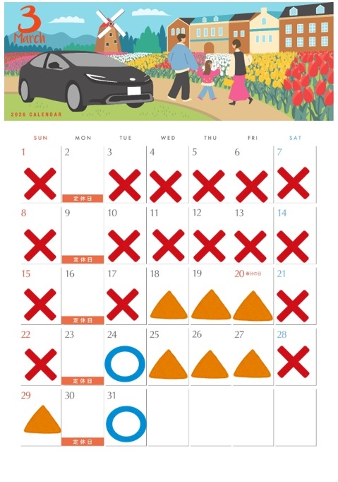 🐥💞3月カレンダー/点検空き状況💞🐥