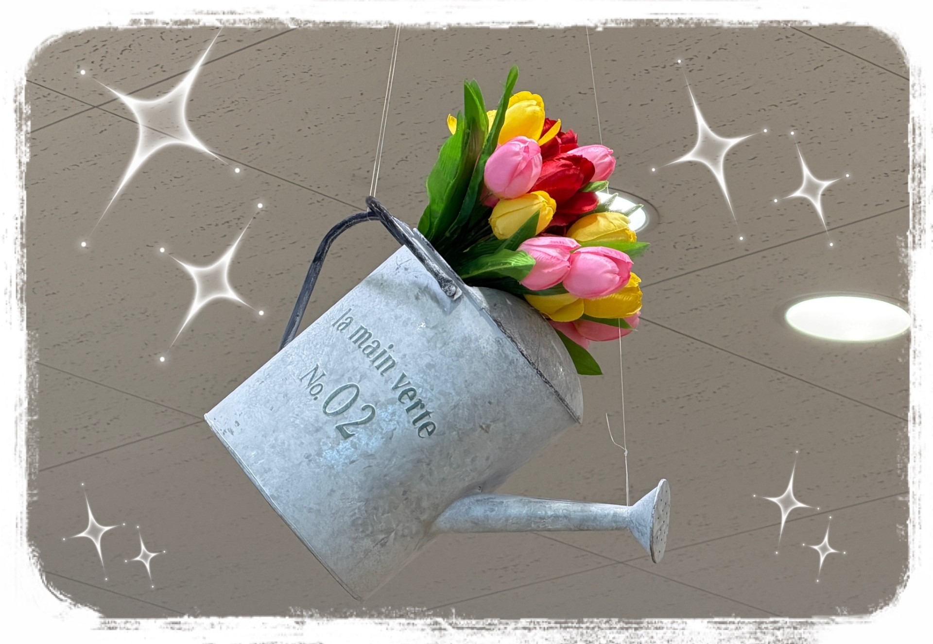 天井も桜色で飾りました🌸