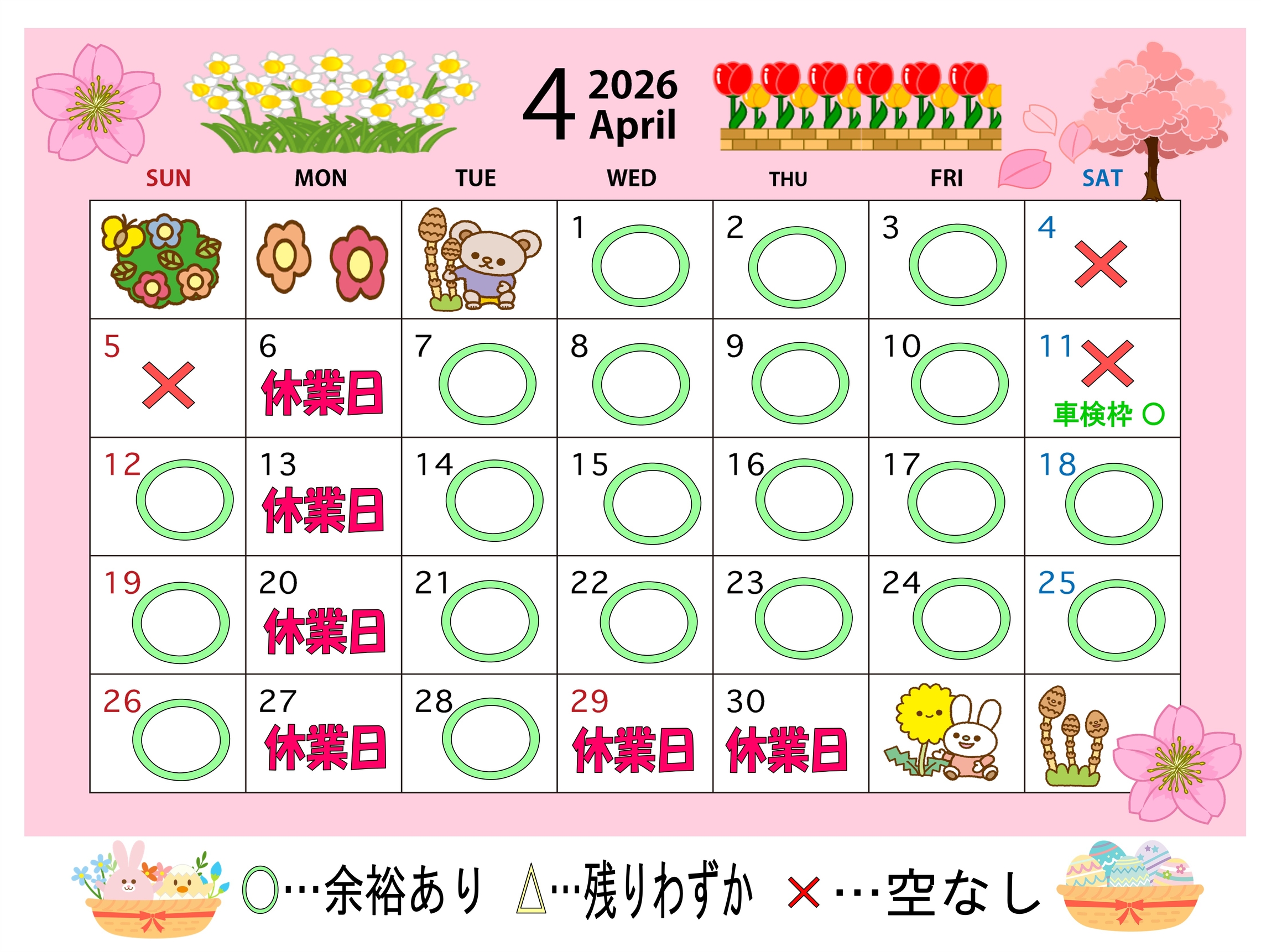 🔧4月 サービス工場 空き状況🔧