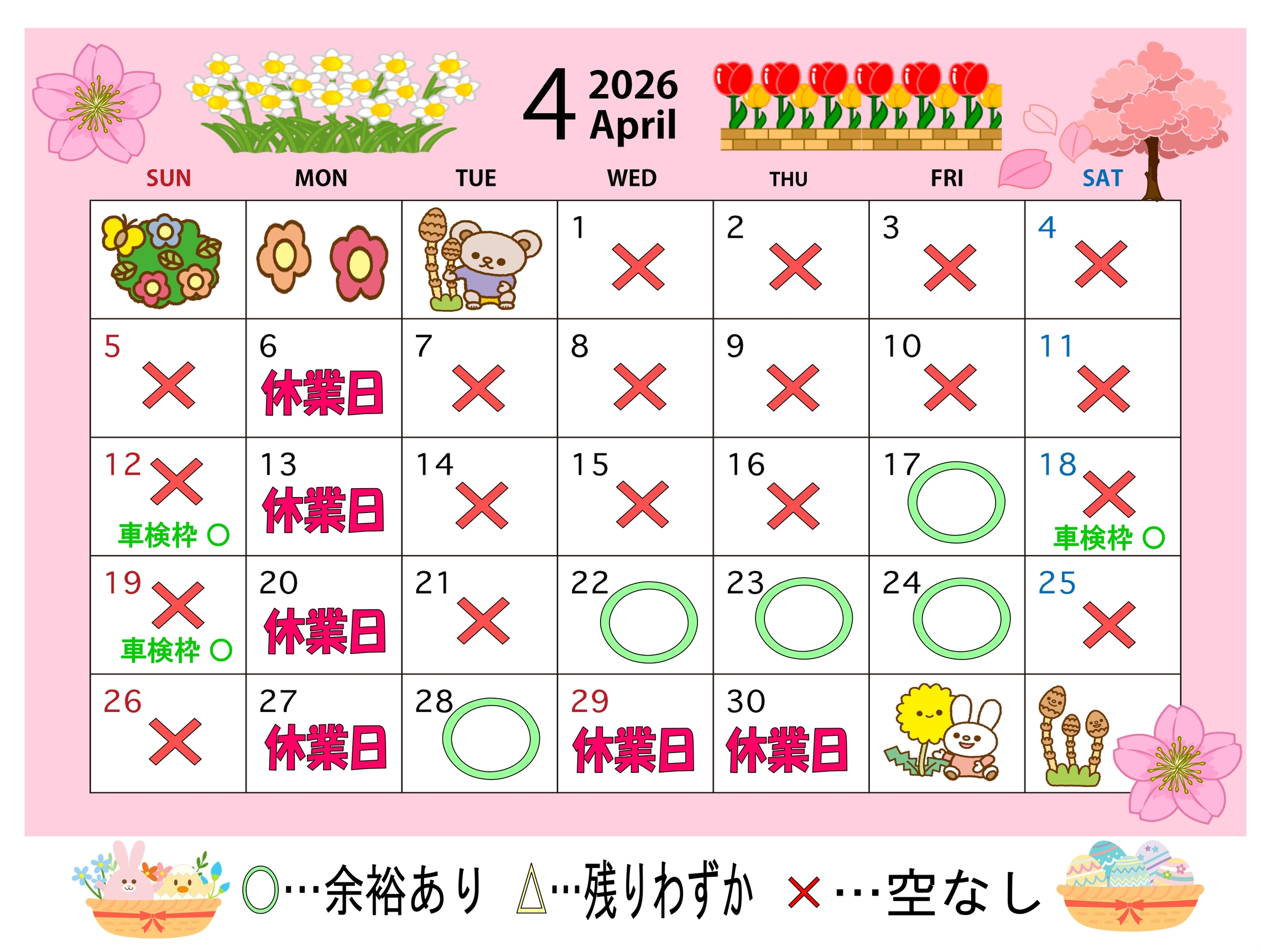 🔧4月&5月 サービス工場 空き状況🔧