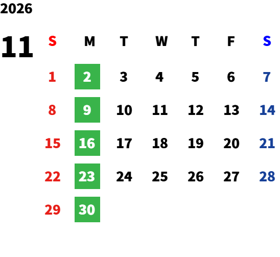 月曜日(詳細は下記の営業日カレンダーをご確認ください。)