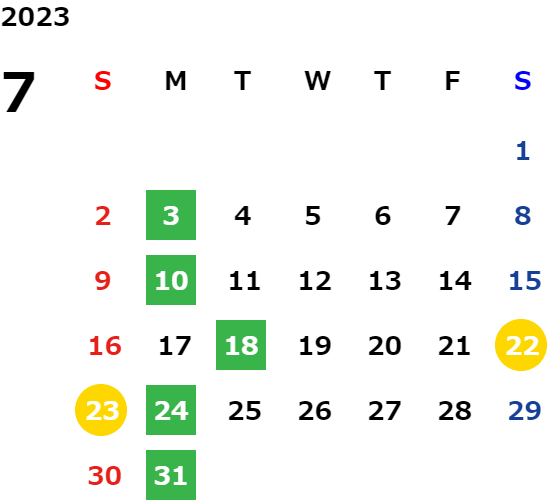 月曜日(詳細は下記の営業日カレンダーをご確認ください。)