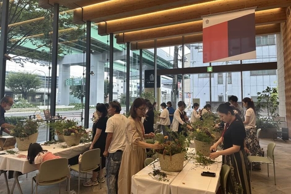 THE CROWN 愛知高辻のエントランスを華やかに彩る装花を手掛ける、人気のフラワーショップ「フラワーノリタケ」のオーナー則武 潤二さんを迎え、季節の花々で作るフラワーアレンジメント教室を開催しました。