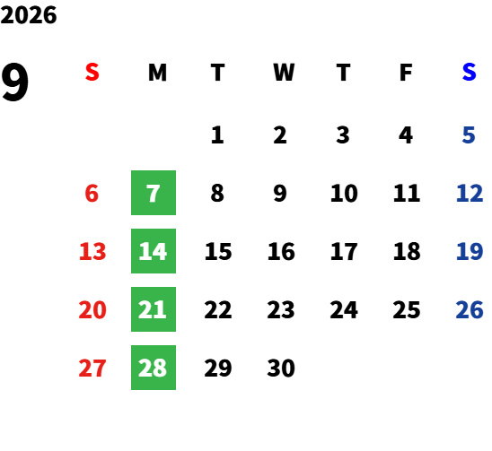 月曜日(詳細は下記の営業日カレンダーをご確認ください。)